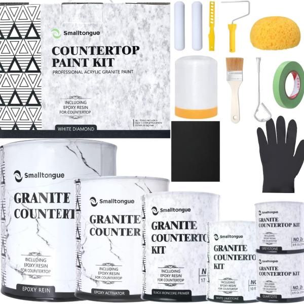 Smalltongue Countertop Paint Kit, White Diamond Epoxy Countertop Paint Kit(Including Epoxy Resin), All-IN-ONE Set, Cover Up to 35 SQ. FT., For Marble, Granite, Formica, Laminate, Ceramic Tile etc.