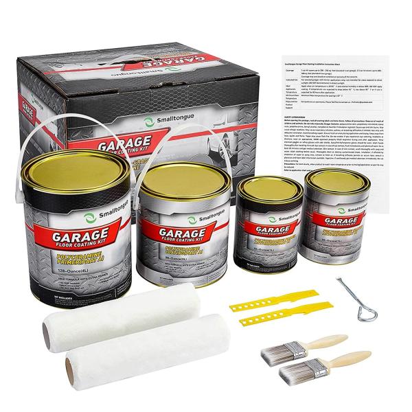 Smalltongue Polycuramine Garage Floor Coating Kit, Including Primer, Industrial Grade Garage Floor Coating, for Garage, Cover Up to 200-250 SQ. FT. 1 Car Kit, Grey, for Garage, Factory, Basement